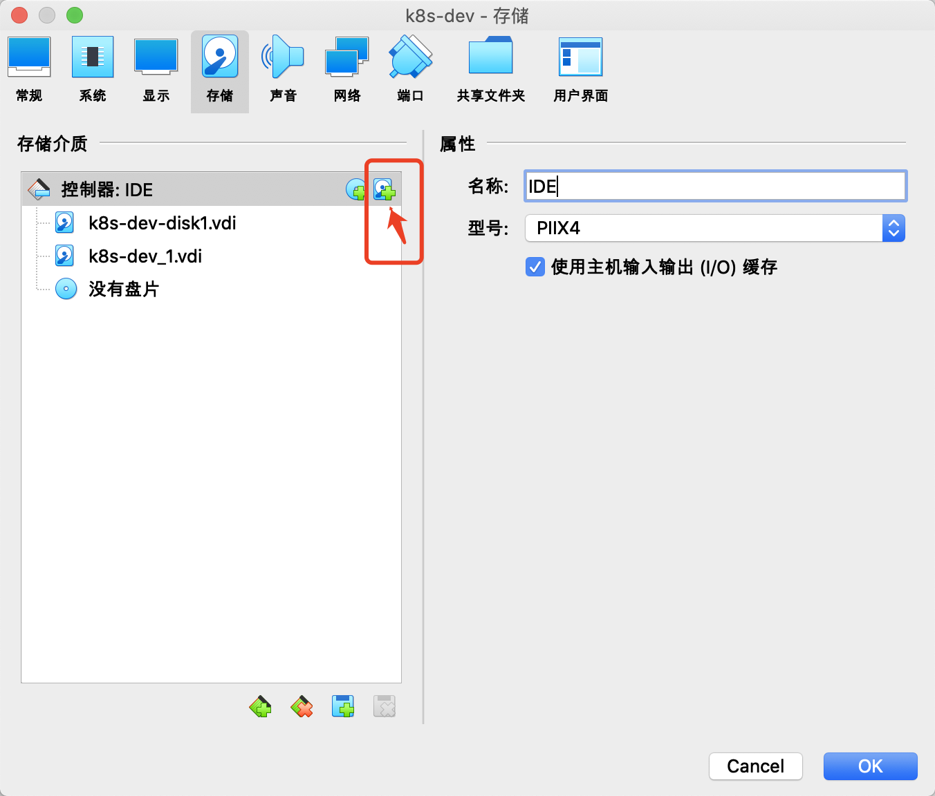 VitrualBox是不允许更改重置硬盘大小的,所以当硬盘不足时,只能添加新硬盘。