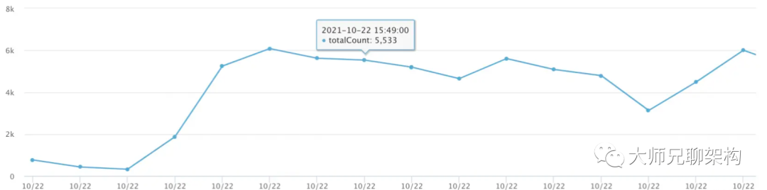 测试了没问题后上线。观察线上监控稳定。本以为⾼枕⽆忧的时候,⼀周之后,数据库再次出现了⼤量的慢查询,数据库CPU报警,观察接⼝监控: