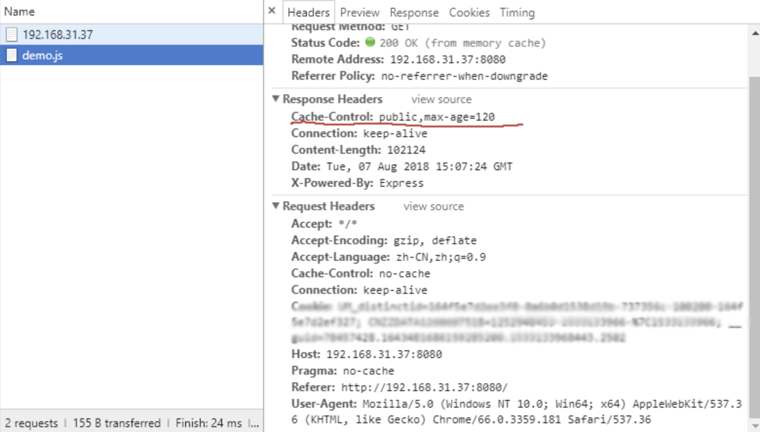 res.setHeader('Cache-Control', 'public,max-age=120') //2分钟复制代码