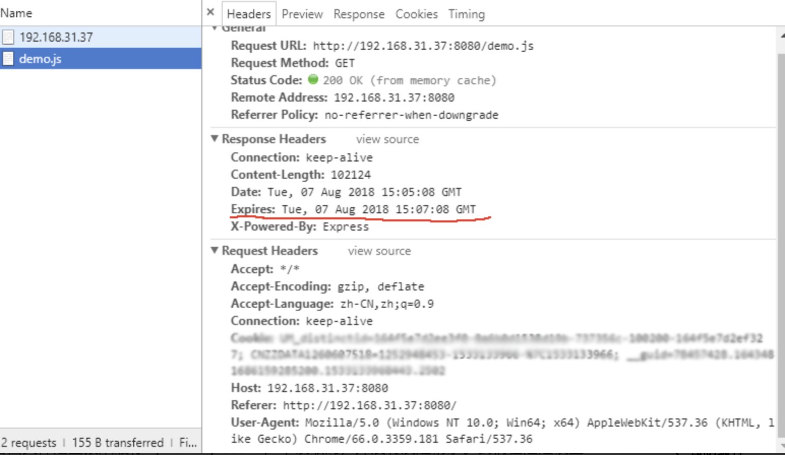 expires的值是告诉浏览器的缓存过期时间(值为GMT时间,即格林尼治时间),即下次请求时,没有到达过期时间,浏览器会直接使用缓存数据。