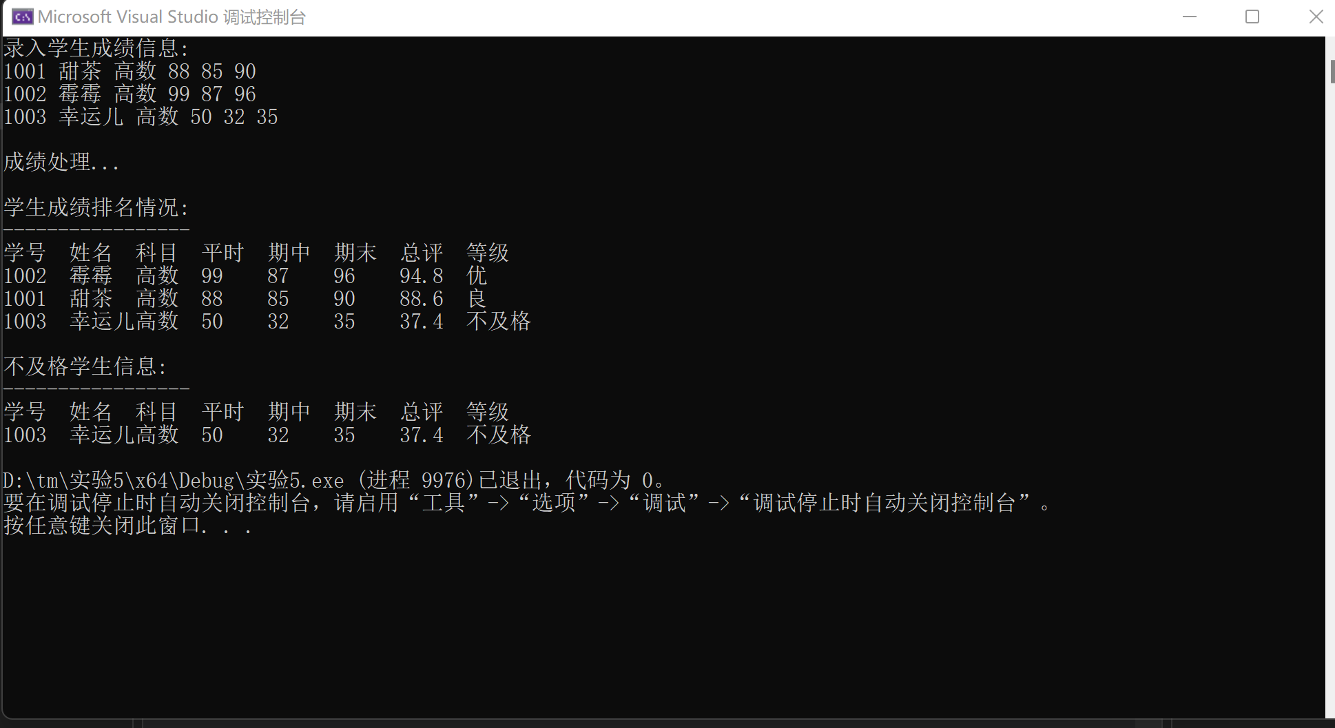 printf("\n成绩处理...\n");