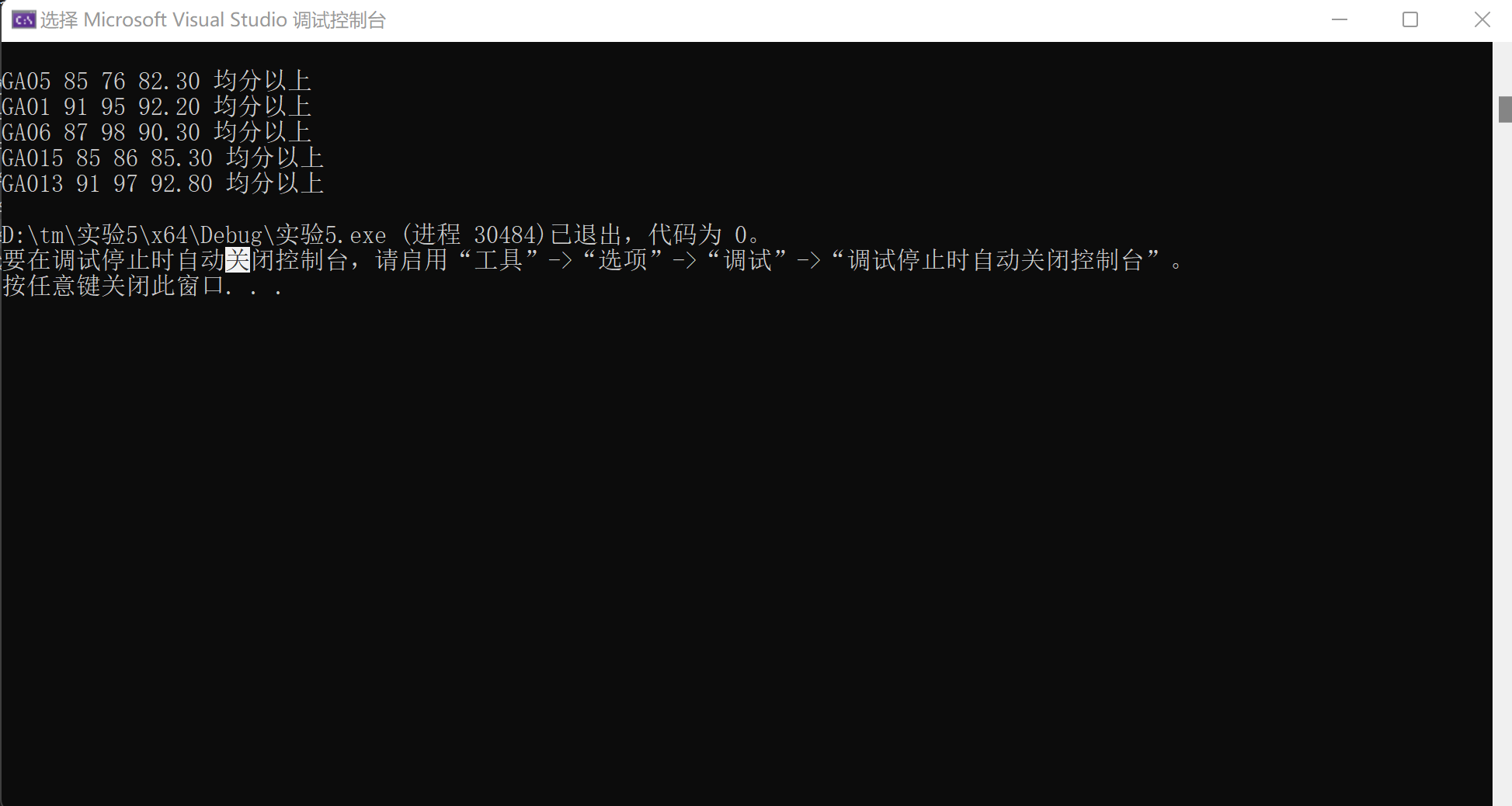 // 输出均分以上学生记录