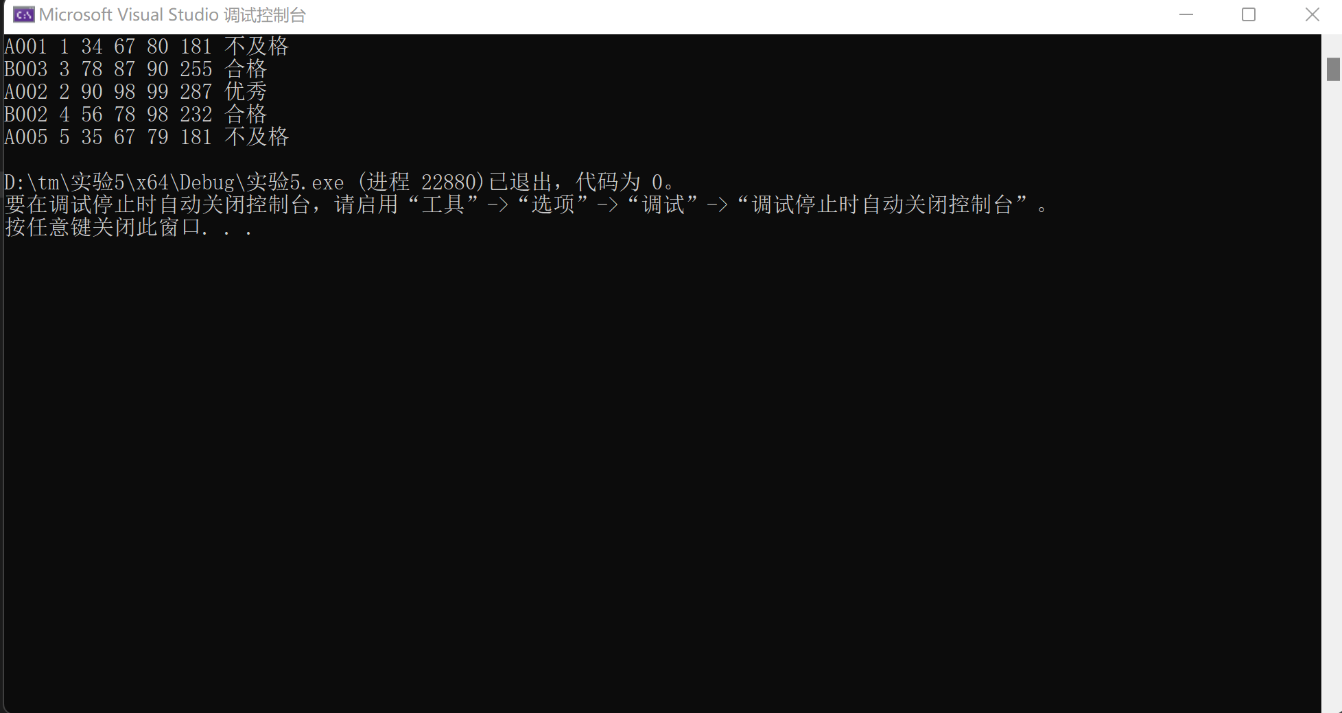 STU s[6 * N] = { {"A001", 1, 34, 67, 80},