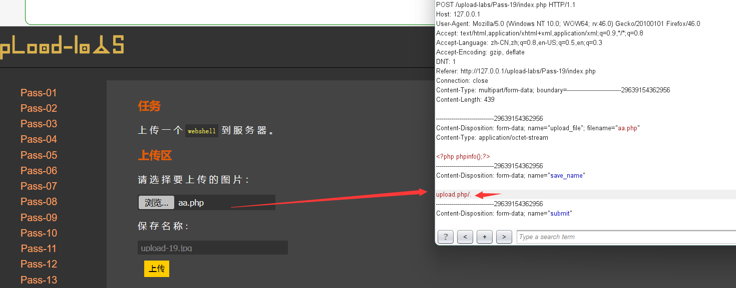 上传文件,抓包更改系统想要更改的文件后缀并在结尾 /. 函数会忽略/.并从而绕过