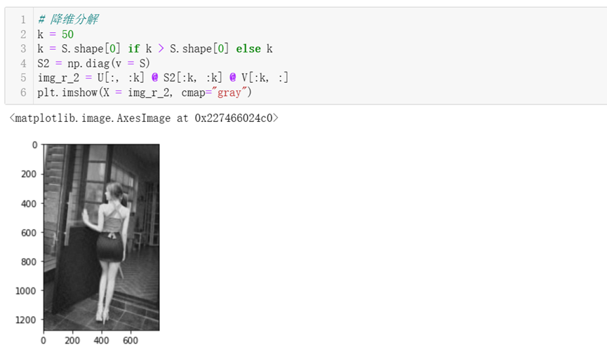 下面取前k=50个奇异值,将求出对应的压缩图像并显示,可看出前20个奇异值包含的信息,比k=20又清晰了很多。