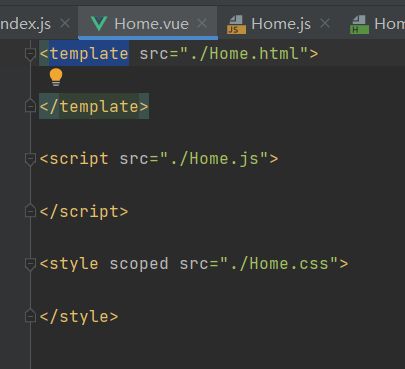 home.html里为home.vue中template中的内容 注意:此时template标签中不需要写id,id写在html的第一个div中
