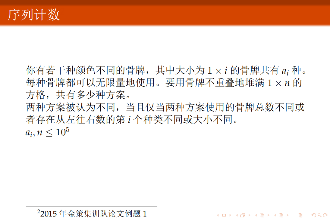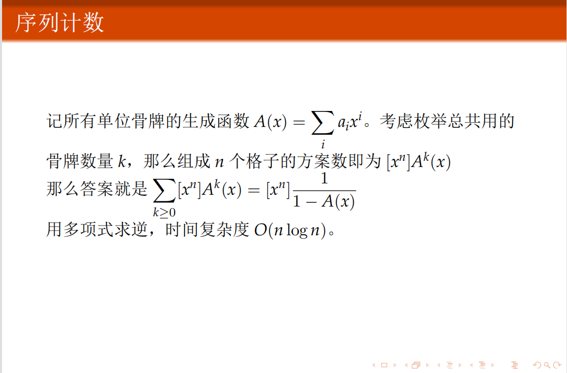 那么Ak(x)就是使用k个骨牌的方案数。可以认为在做系数卷积的时候直接在k-1个骨牌后面放1个骨牌,故为OGF。