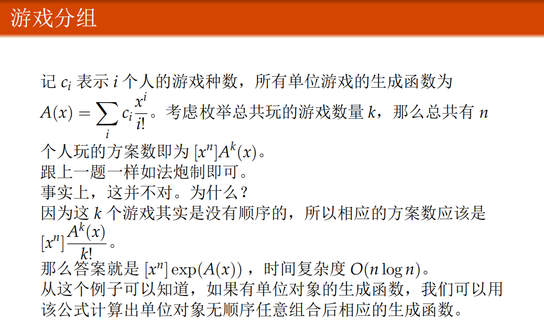 一般A表示该类组合对象,xi/i! 表示大小为i的组合对象,Ai表示大小为i的组合对象的数量。
