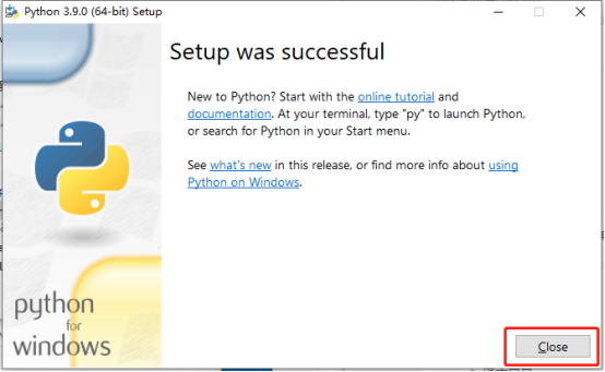 8. 等待安装,安装完成之后,点击close关闭窗口