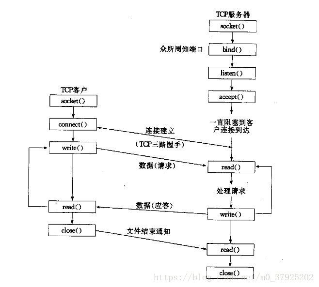 socket套接字 TCP客户—服务器程序的执行流程图