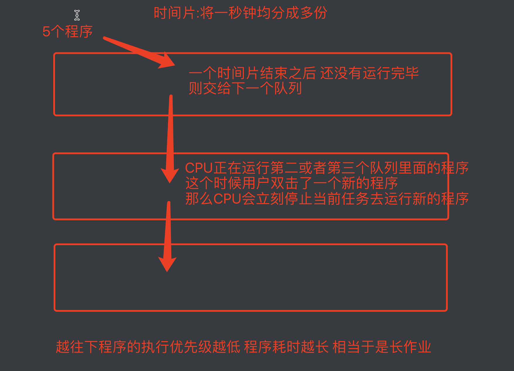 多级反馈队列:根据作业长短的不同再合理分配CPU执行时间
