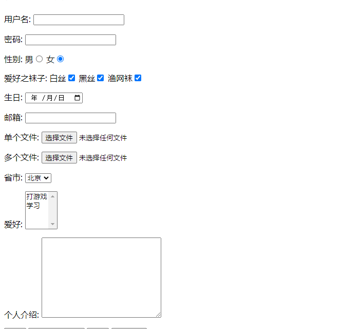 <form action=""></form> # 需要在form标签内部编写获取用户数据标签
