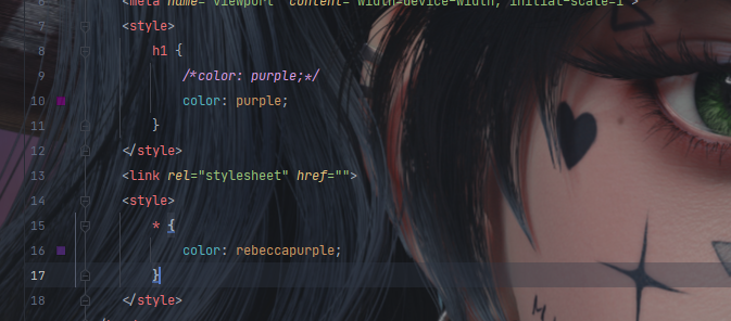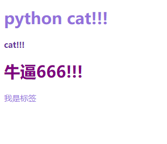 color: purple; /*让所有h1标签内部所有的字体颜色变为紫色*/