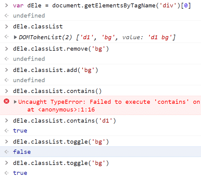 标签对象.classList.contains() # 判断是否含有某个类属性