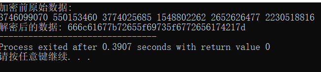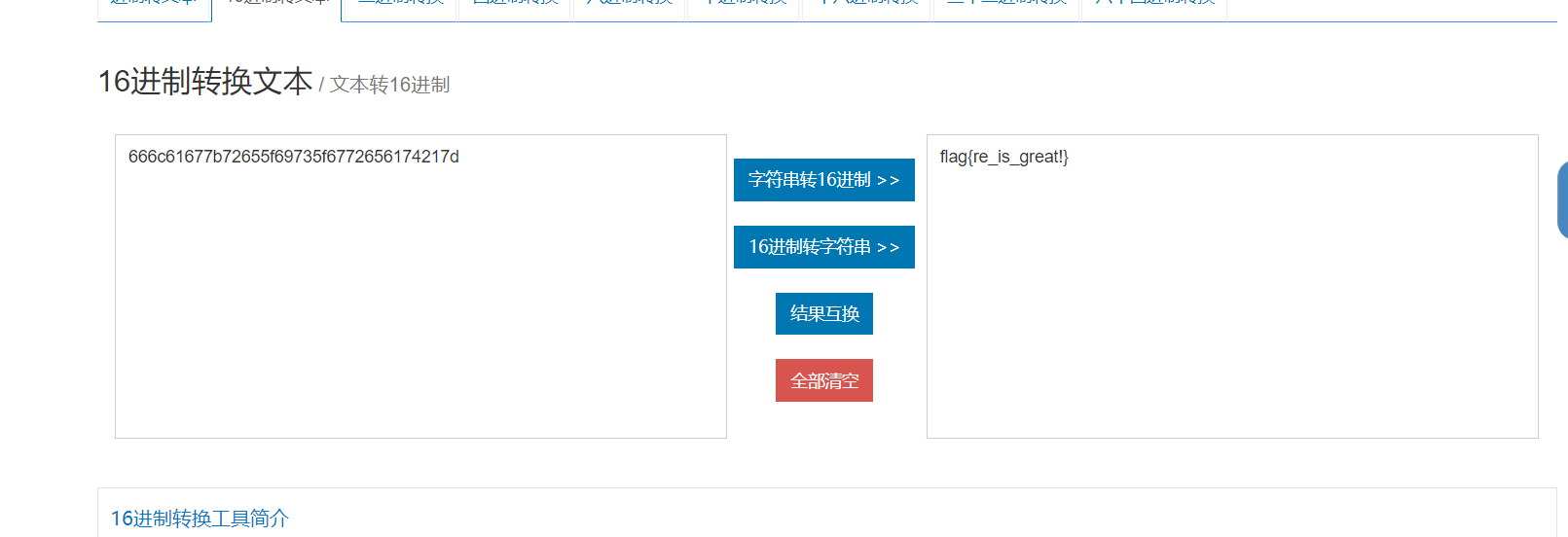 解密后得到一个十六进制数据,在在线网站上十六进制转文本即可得到flag