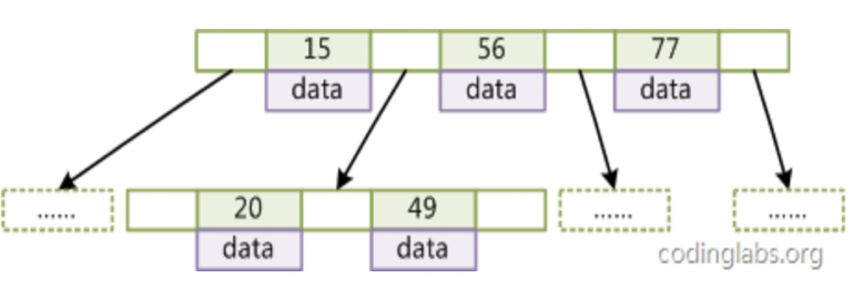 - 节点中的指针类似于二叉搜索树。