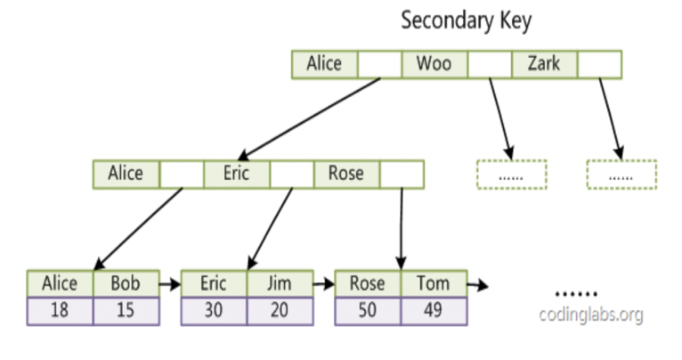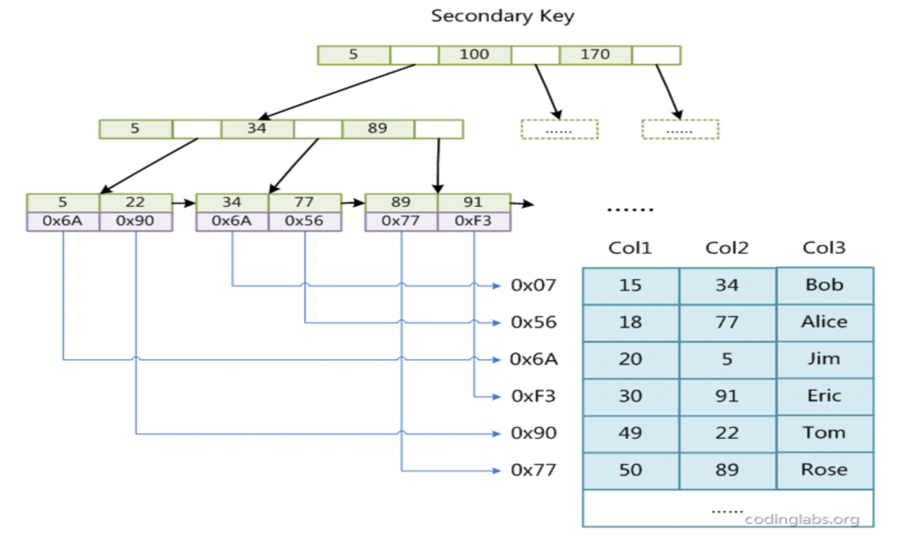 辅助索引存储示意图
