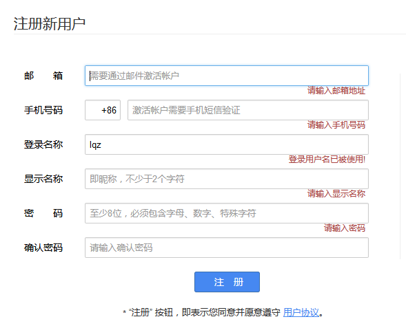 用户在表单输入用户名与密码,通过Ajax提交给服务器,服务器验证后返回响应信息,客户端通过响应信息确定是否登录成功,成功,则跳转到首页,否则,在页面上显示相应的错误信息