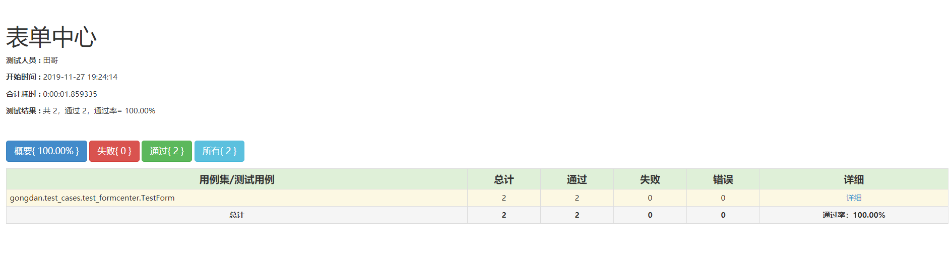 runner = HTMLTestRunnerNew.HTMLTestRunner(stream=f,verbosity=2,title="表单中心")