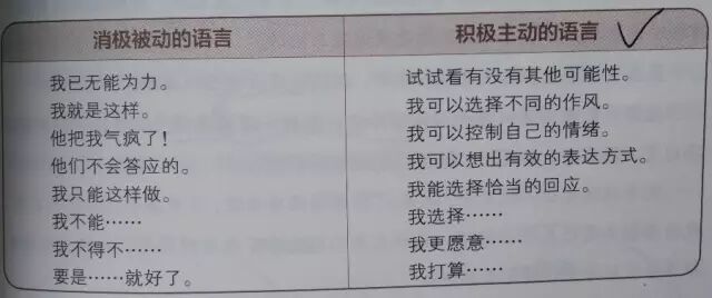 聆听一个人的日常语言,就可以看出这个人是否有积极主动的习惯,参看下表: