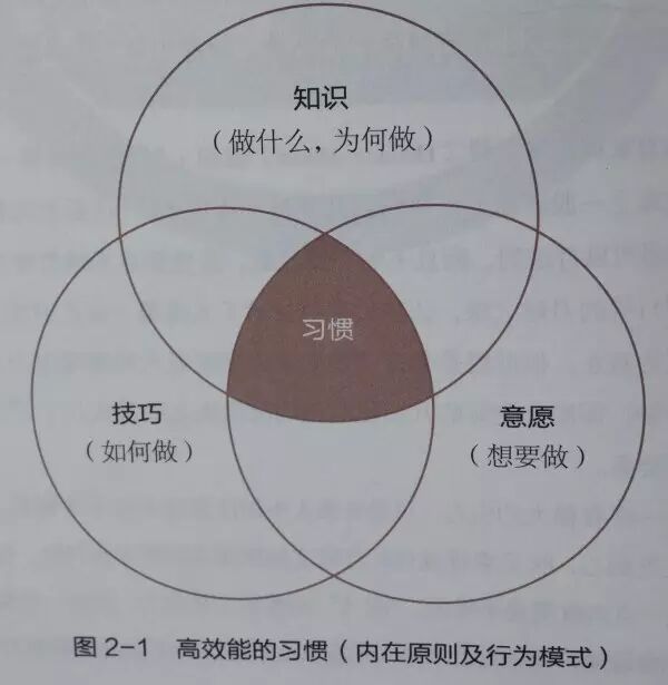 知识是理论范畴,指点“做什么”及“为何做”;技巧告诉我们“如何做”;意愿促织“想要做”。要养成一种习惯,三者缺一不可。
