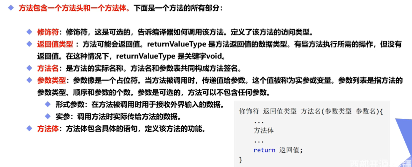 Java的方法类似于其他语言的函数,是一段用来完成特定功能的代码片段。一般情况下,定义一个方法包含以下语法: