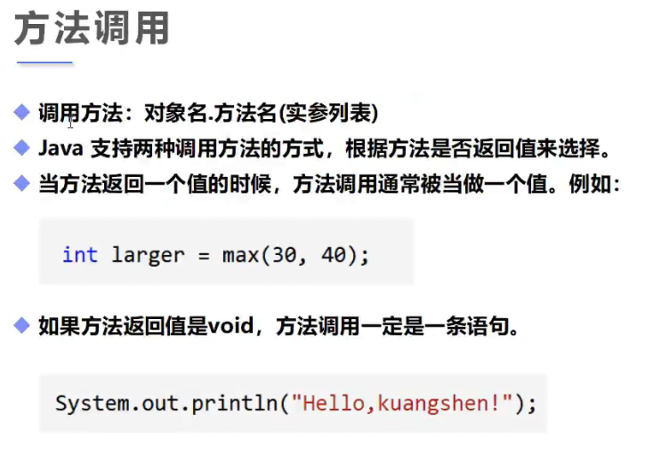 方法的本意是功能块,就是实现某个功能的语句块的集合。我们设计方法的时候,最好保持方法的原子性。(就是一个方法只完成一个功能,这样有利于我们后期的扩展)