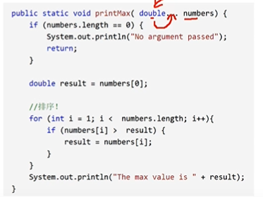 e.g 比如你对一个方法进行重载,定义的方法名相同,同类型的参数,只是个数不同,如果按照需求,可能会需要定义多个方法名相同的方法,这样就很麻烦,(不确定要传递多少参数)所以引进了可变参数。