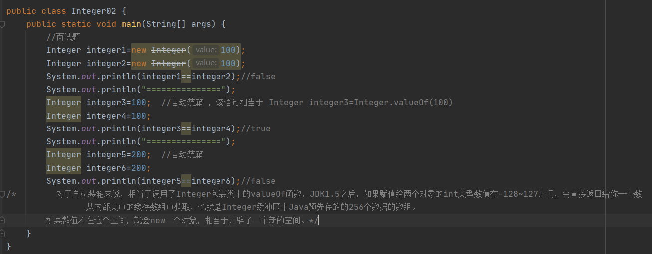 关于Integer整数缓冲区:Java预先创建了256个常用的整数包装类型对象。