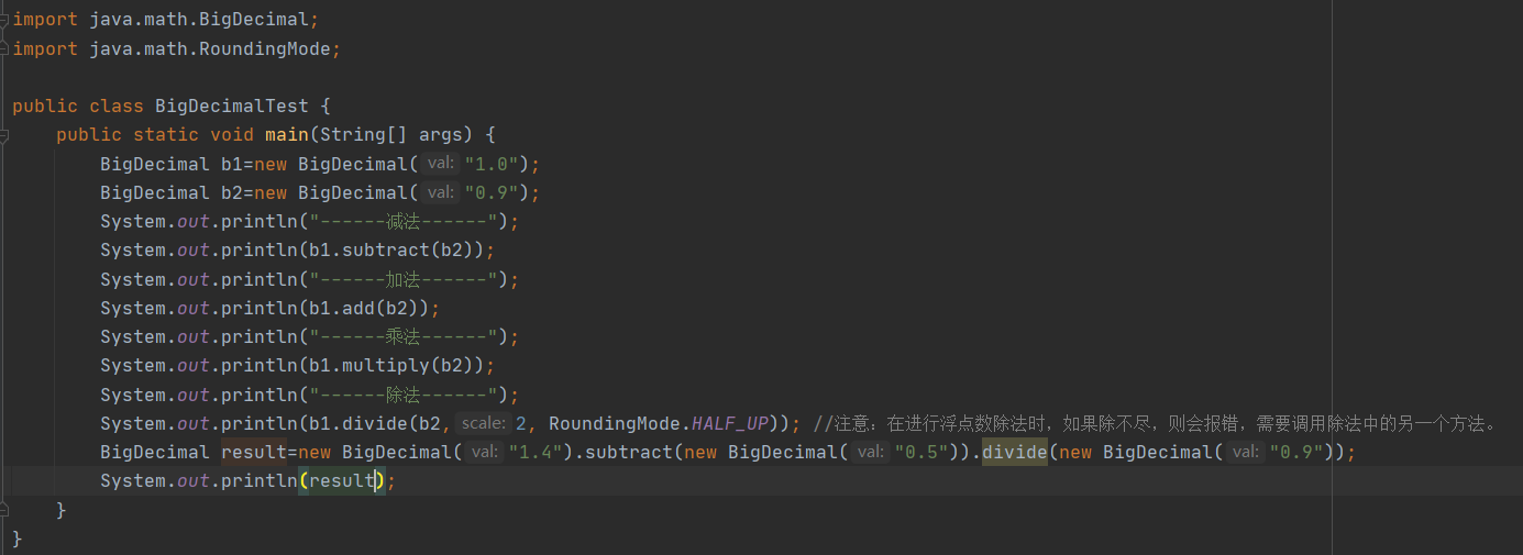 如果用float double基本数据类型的数据进行相关运算,结果具有舍入误差,就是结果约等于我们想的实际结果,这时候就需要用BigDecimal类对浮点数进行精确计算得到正确结果。
