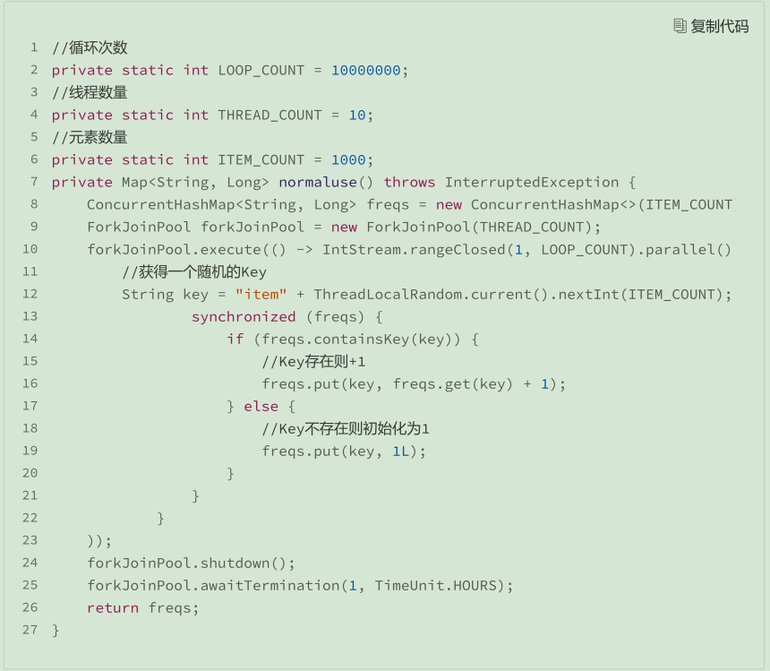 - 使用 ConcurrentHashMap 来统计,Key 的范围是 10。