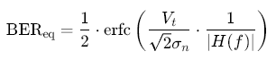 若考虑多径干扰,需通过信道均衡(如判决反馈均衡、线性前馈均衡)抑制ISI,此时BER公式需引入均衡器系数修正: