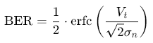 其中,\(erfc(⋅)\)为互补误差函数,\(σ_n\)为噪声标准差,\(V_t\)为最佳判决门限(通常为 \(A/2\),即信号幅度的一半)。