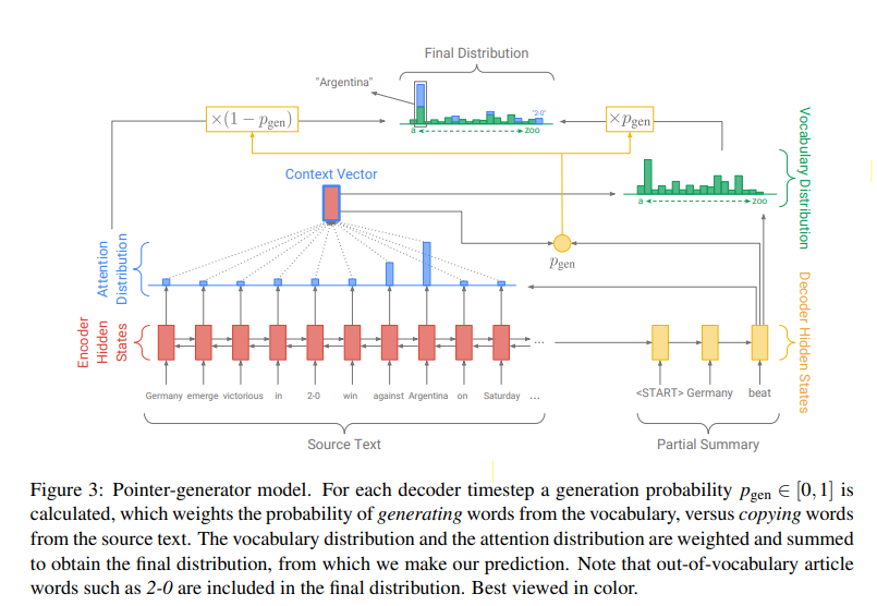 指针网络通过添加\(P_{gen}\)来改进网络。