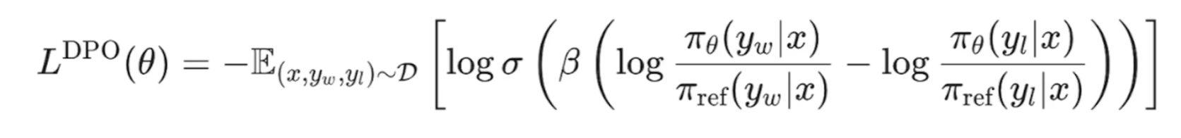 (1)DPO:https://www.cnblogs.com/theseventhson/p/18252727 我之前介绍过,原理就是让LLM的回复尽量接*人工chosen的答案,原理reject的答案,loss如下:
