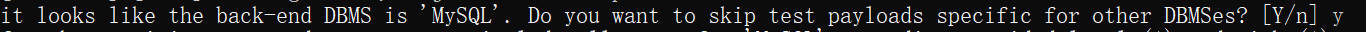 接下来告诉我们这个网站用的可能是mysql数据库类型,以及可能有xss,并且会问我们是否跳过其它数据库类型的检测,我们直接选择跳过