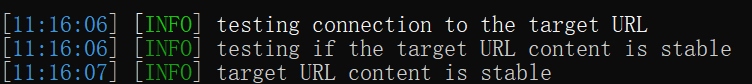 然后它会开始检测,如果这个点能够被注入,会询问我们是否要继续检测其他参数(如果有其他的参数的话)由于我们只有一个参数,所以是否都一样