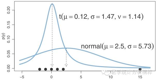 回归中应用t分布,可以得到更稳健的估计量(β值或OR值),这也是我们实现“稳健回归”的一个重要手段。