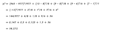 2、根据上面所求期望频数,计算检验统计量X^2.
