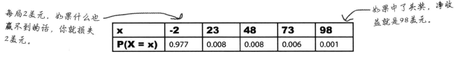 下面是某台抽奖机的期望分布,其中X代表每局游戏的净收益(每局独立事件):