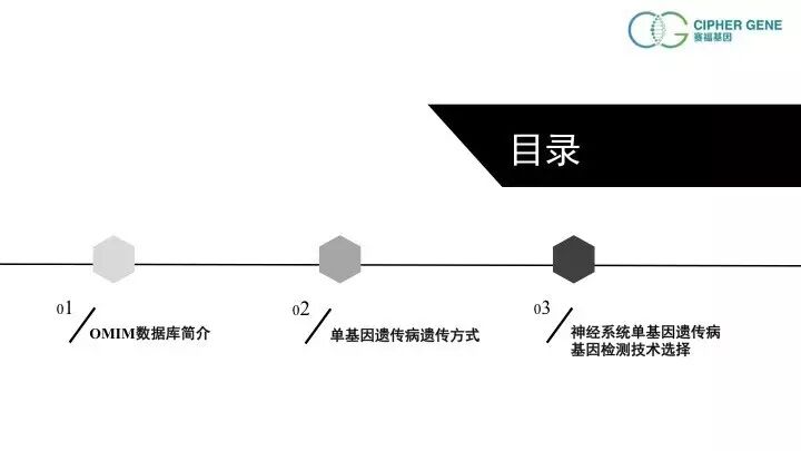 这次主要从以下三个方面进行简单的介绍:神经系统遗传病基因检测的一些简单知识,包括OMIM数据库的简单介绍;单基因遗传病的遗传方式以及神经系统遗传病的基因检测技术选择。
