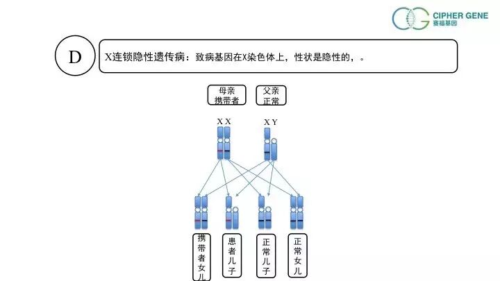 X连锁隐性遗传病,男性较女性多。双亲无病时,儿子可能发病,致病基因只能从携带者母亲传来,如血友病、进行性肌营养不良假性肥大型。
