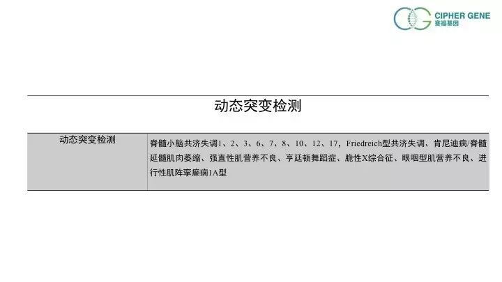 表中列出了适合进行动态突变检测的疾病列表,请各位老师参考。