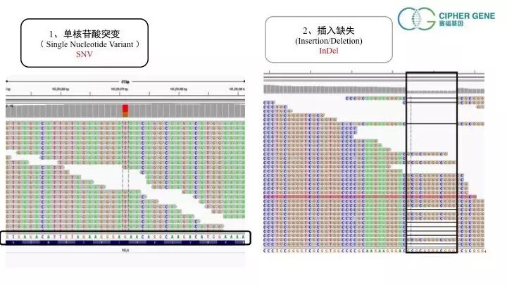 上一次课程中我们讲过突变的类型,感兴趣的老师可以再翻阅一下上次课程的PPT。图中的两张图展示了两种突变类型的mapping图。