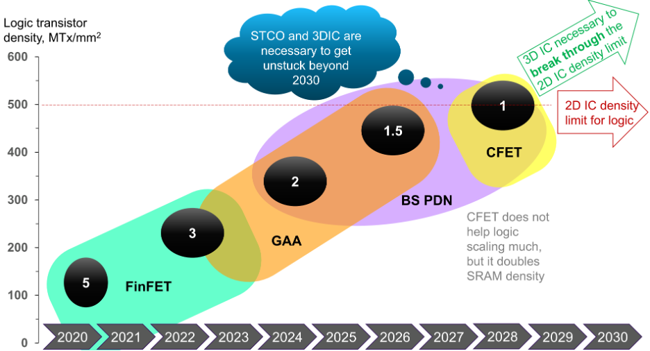 GAA之后现在能看到的新结构有CFET和二维。 -