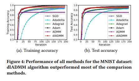 基于这些问题,最新的一期 KDD2019 论文提出了 ADMM 的改进版本 dlADMM,第一次使基于 ADMM 的算法在多个标准数据集上达到当前最佳效果,并且在收敛性理论证明得到重要突破。