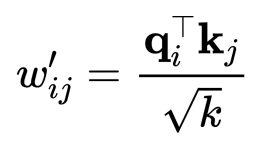 其中 j 是对整个序列的索引,并且其权重总和为1。权重不是正常的神经网络中的参数,而是从