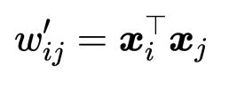 所有原始点积的集合形成一个矩阵,我们可以通过简单地将矩阵X乘上它自己的转置来得到: