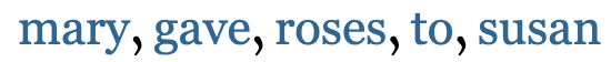 我们看到单词gave和句子中的不同部分有不同的关系。mary表示谁正在做给予这件事,而roses表示正在被给予的东西,susan则表示接受者是谁。