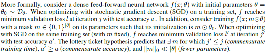 Lottery Ticket Hypothesis用符号方式描述如下: